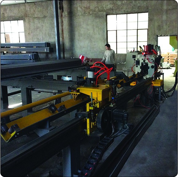 本生產(chǎn)線適用于電力、通訊、金具、立體車庫、電梯制造、空調(diào)制造等領(lǐng)域規(guī)格較小的角鋼型材的雙肢邊同時(shí)沖孔和自動定長切斷作業(yè),可通過更換模具來實(shí)現(xiàn)鉚釘孔、長圓孔、異型孔的一次性制孔成型。